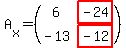 Now replace the first column of A (that corresponds to the variable 'x') with the values that form the right hand side of the system of equations. We will denote this new matrix (since we're replacing the 'x' column so to speak).