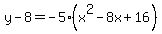 The graph of y=x^2 is shifted 4 units to the right. this graph is then vertically stretched by a factor of 5 and reflected across the x-axis.Finally the graph is shifted 8 units upward. Answer by josmiceli(19441) (Show Source):
