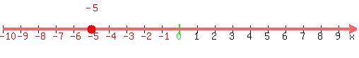Since this inequality is not true, we simply shade the entire portion that does not contain the point x=0 using the point x=-5 as the boundary. This means we shade everything to the left of the point x=-5 like this