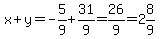 y = -5/9 + 4 = -5/9 + 36/9 = 31/9