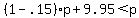Question 1104518: Samantha wants to purchase a new dress. She can buy it online for 15% off but she will have to pay shipping which is 9.95. She can purchase the same dress at a local store for full price but not have to pay shipping. What price makes the jacket less expensive to buy online? Answer by josmiceli(19441) (Show Source):