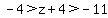 multiply by -1; change the direction of the inequality rewrite the inequality in standard form -- with the lower bound on the left and the upper bound on the right subtract 4 to get z by itself