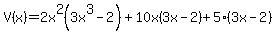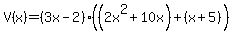 Question 999752: The volume of a rectangular box is V(x)=(6x^3+29x^2-7x-10)cm^3. The box has a length of (2x+1)cm and a width of (x+5)cm. Determine the height of the box.