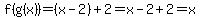 -> SOLUTION: verify that f and g are inverse functions f(x)=x+2 g(x)=x-2