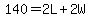Perimeter is given 140, so equation for it is . Simplified, this becomes .