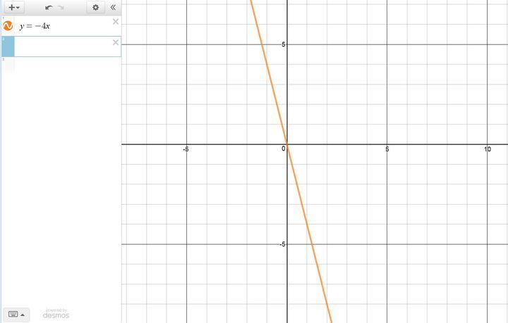 Algebra ->  Linear-equations -> SOLUTION: y=f(x)=-4x      Log On