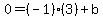 Starting with the slope-intercept form: y = mx+b, we'll first find the slope, m, using the formula: so now we can write: Now we need to find the value of b. We do this by substituting the x- and y-coordinates of either one of the two given points into this equation and solving for b. Let's choose the second point (3, 0). Simplify. Add 3 to both sides. Now we can write the final equation: