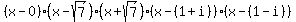 = x%2A%28x%5E2-7%29%2A%28%28x-1%29-i%29%2A%28%28x-1%29%2Bi%29 = x%2A%28x%5E2-7%29%2A%28%28x-1%29%5E2%2B1%29 = x%2A%28x%5E2-7%29%2A%28x%5E2+-+2x+%2B2%29.