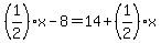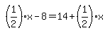 Cartoon (animation) form: For tutors: simplify_cartoon( (1/2)*x-8=14+(1/2)*x )