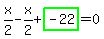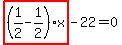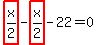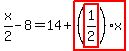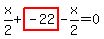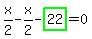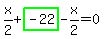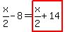 Text form: (1/2)*x-8=14+(1/2)*x simplifies to -22=0