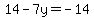 => +14+-+7y+=+-14+ (Next, bring -14 to the Left hand side by adding both sides by 14 and bring -7y to the Right hand side by adding both sides by 7y)