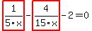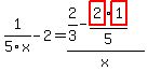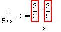 For tutors: simplify_cartoon( 1/5/x-2=2/3/x-2/5/x )