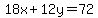 -> SOLUTION: find the x-intercept 18x + 12y = 72
