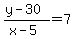 Slope7, and passes through (5,30) Answer by josmiceli(19441) (Show Source):