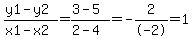 Question 673023: Write an equation in standard form with integer coefficients for the line going through the points (2,3) (4,5)