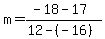 SOLUTION: What is the slope for (-16,17) (12,-18)?