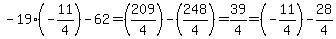Let x be the unknown number. -19 times a number minus 62 is equal to -7 less than a number. What is the number?