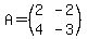 First let A=%28matrix%282%2C2%2C2%2C-2%2C4%2C-3%29%29. This is the matrix formed by the coefficients of the given system of equations.