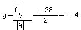 To find the second solution, divide the determinant of A%5By%5D by the determinant of A to get: y=%28abs%28A%5By%5D%29%29%2F%28abs%28A%29%29=%28-28%29%2F%282%29=-14