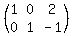 Looking at the last matrix , the last column has the values 2 and -1 in it. So this means that the solution is and forming the ordered pair (2,-1).