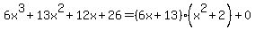 Question 1133536: What should be added to 6x^3+13x^2+4x+20, so that it becomes exactly divisible by 2+x^2? Solve through synthetic division