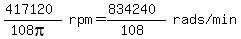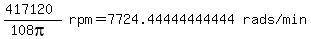 (b)  1229.358 revolutions per minute is  2pi%2A1229.358 = 2*3.14159*1229.358 = 7724.278 radians per minute  (rounded).  ANSWER