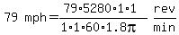 the number of revolutions per minute = %2879%2A5280%29%2F%28%283.14159%2A1.8%29%2A60%29 = 1229.358  (rounded).  ANSWER