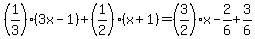 -> SOLUTION: What is 1/3(3x-1) + 1/2(x+1)