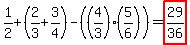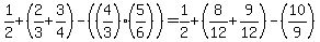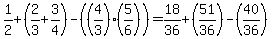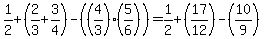 SOLUTION: how to solve 1/2 + (2/3 + 3/4)-(4/3 x 5/6)