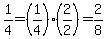 Multiply fractions by multiplying numerators together and multiplying denominators together.