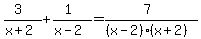 {{{ (3)/(x+2)+(1)/(x-2)=(7)/(x^2-4) }}}
