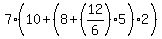SOLUTION: 7×{10+[8+(12÷6)×5]×2