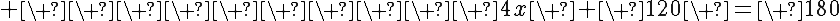 Question 316260: two conseccutive angels in a parallelogram are 120 and 4x. solve for x.