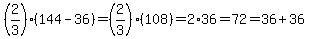 %282%2F3%29%28144-36%29+=+%282%2F3%29%28108%29+=+2%2A36+=+72+=+36+%2B+36+