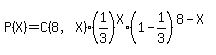 P%28X%29=C%288%2CX%29%2A%281%2F3%29%5EX%2A%281-1%2F3%29%5E%288-X%29