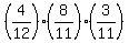 P(gold,iron,gold) = (4/12)(8/11)(3/11) = 8/121