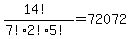 14! = 14*13*12*11*10*9*8*7*6*5*4*3*2*1 = 87,178,291,200