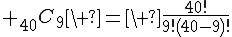 Question 998085: In how many ways can nine students be selected randomly from a class of 40 students?