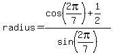 * R = √[1 / [2 * (1 - cos(257.14°))]]