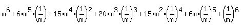 -> SOLUTION: Expand this expression. (m+1/m)^6 Really appreciate your help. Thank you!