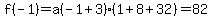 f%28-1%29=a%28-1%2B3%29%281%2B8%2B32%29=82