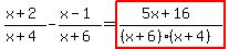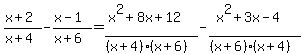 Combine as indicated by the signs. x+2 / x+4 - x-1 / x+6