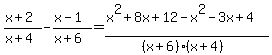 (x+2)/(x+4)-(x-1)/(x+6)