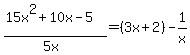 -> SOLUTION: Divide 15x^2 + 10x - 5 by 5x