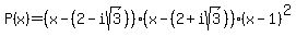 Question 1098188: Find a polynomial with smallest degree with rational coefficients that has roots (2 - i√ 3), (2 - i√ 3) and 1 of muntiplicity 2. Answer by t0hierry(194) (Show Source):