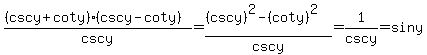 quantity cosecant of y plus cotangent of y times quantity cosecant of y minus cotangent of y divided by cosecant of y. Answer by greenestamps(13216) (Show Source):
