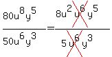 80u^8y^5 / 50u^6y^3