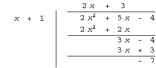 -> SOLUTION: Divide 2x^2+5x-4/x+1