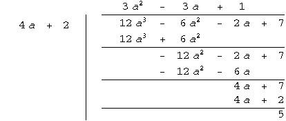 -> SOLUTION: Find the quotient using long division 12a^3-6a^2-2a+7/4a+2