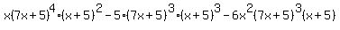 -> SOLUTION: x(7x+5)^4(x+5)^2-5(7x+5)^3(x+5)^3-6x^2(7x+5)^3(7x+5)^3(x+5)